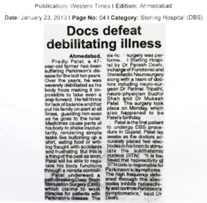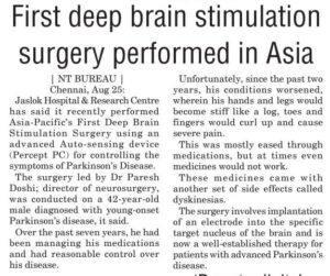 Dr. Doshi has been extensively trained in the field of Stereotaxy and Functional Neurosurgery at the most premiere centers in England for a period of four years.